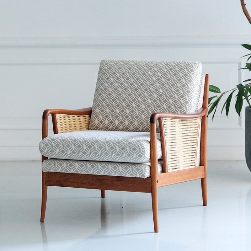 「ショパン」ラウンジチェア|籐 × Niko ジオメトリック柄ファブリック [MF-075]