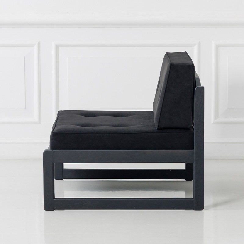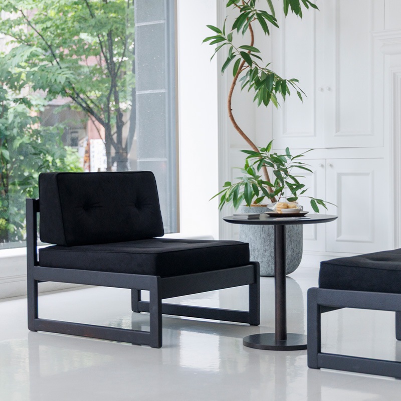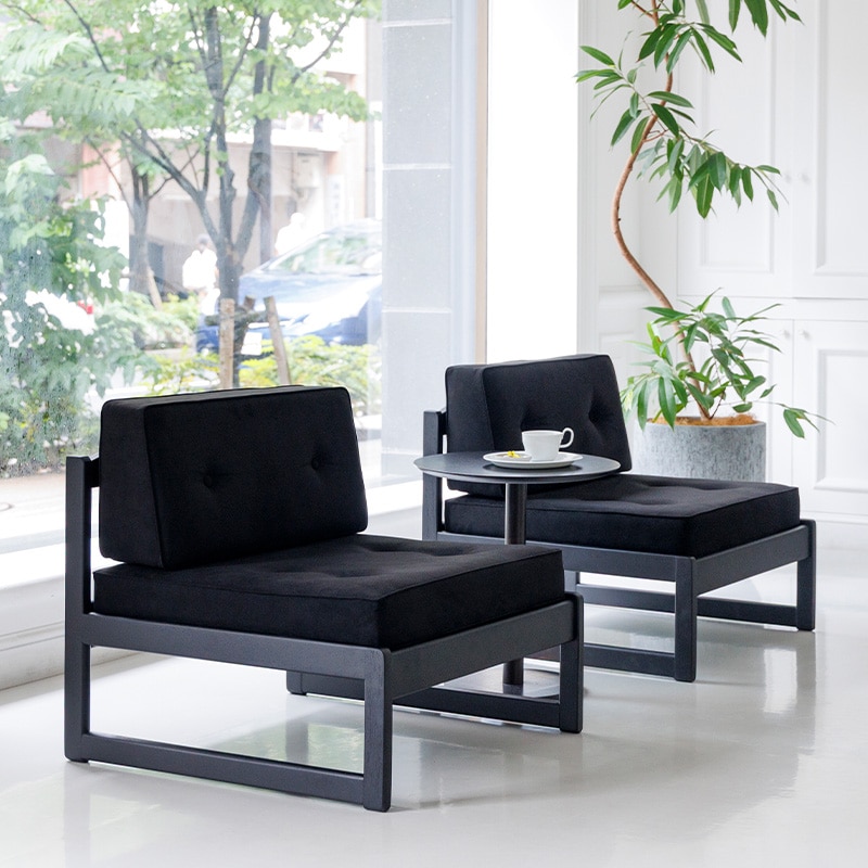 広めの座面とシンプルなデザインが特徴で、アームレス仕様のため自由に組み合わせてレイアウトできます。