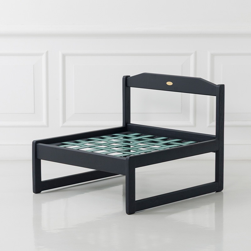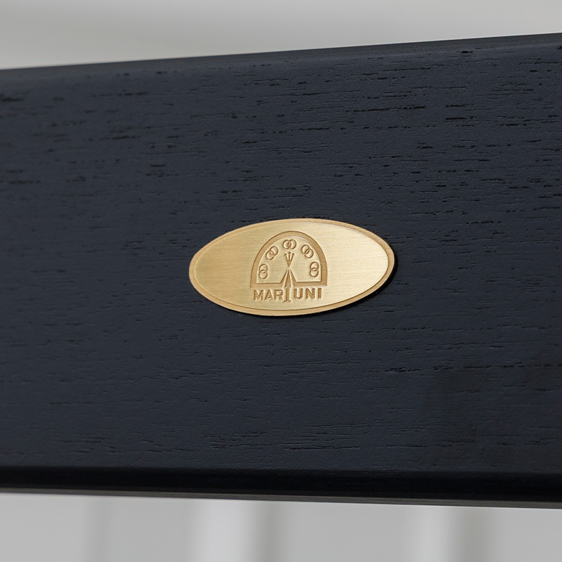 フレームのエッジを削ることでシャープな印象を加え、マットブラック塗装で仕上げることで木目の美しさがより際立っています。