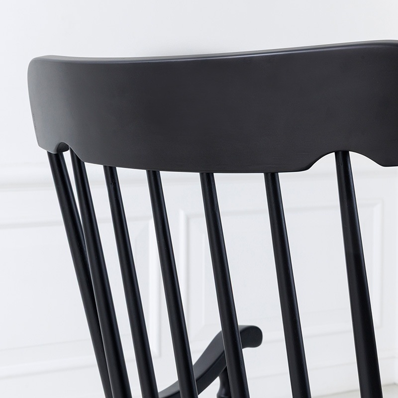 ゆらゆらと揺れるロッキングチェア。一見シンプルな佇まいながら、細部には職人の確かな手仕事が息づいています。緩やかなカーブを描く背もたれには、均整のとれたスポーク(縦桟)が美しく並びます。やや高めに設計された背は、身体をあずけたときに自然と背中に沿い、安心感のある座り心地をもたらします。ゆるやかに湾曲したアームも、肘を置いた瞬間にすっとなじむ形状です。