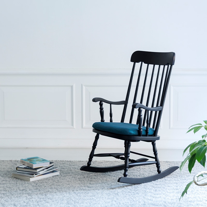揺らぎを愉しむ、黒のロッキングチェア(専用座面クッション付き)[MF-056 ]¥108,900(税込)